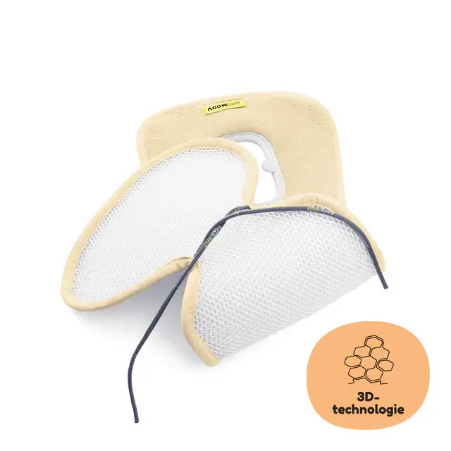 De 3D-structuur zorgt voor constante luchtcirculatie bij rug, beentjes en hoofdje zodat warme lucht zich niet opstapelt.