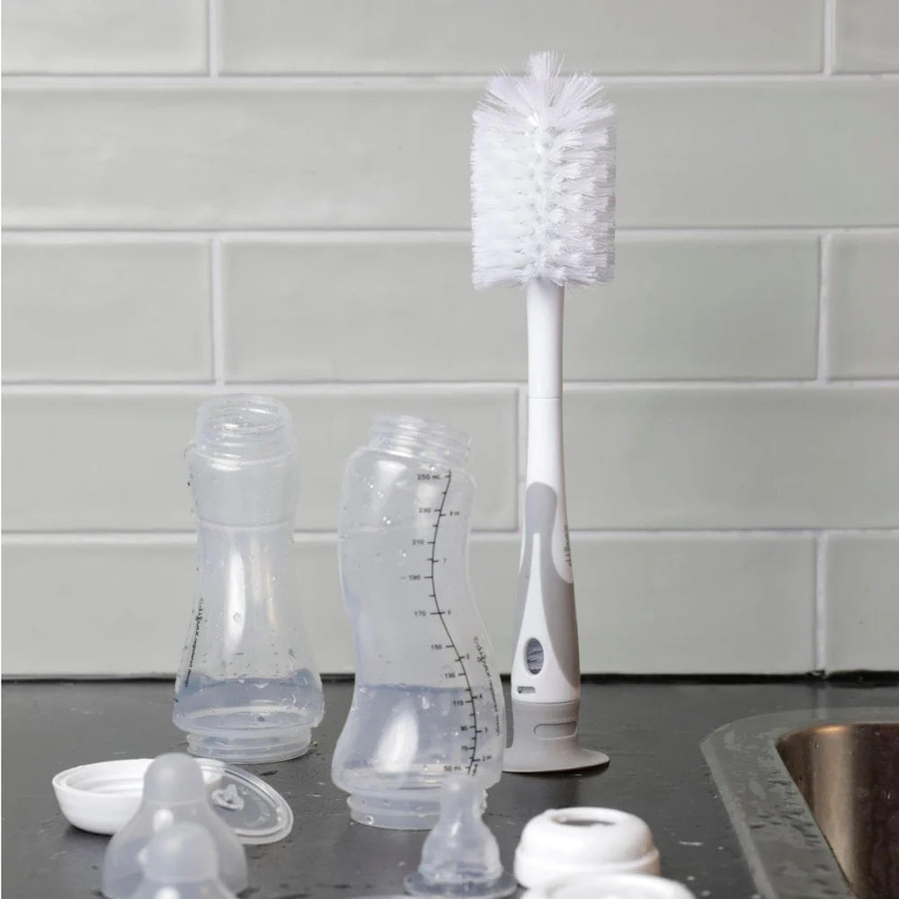 Maak de babyfles altijd eerst goed schoon met een flessenborstel voordat je de fles steriliseert. Zo blijven er geen melk- en flesvoedingresten achter, die schadelijk kunnen zijn voor de gezondheid van je baby. Reinig de flessenborstel onder de hete kraan of in de vaatwasser.