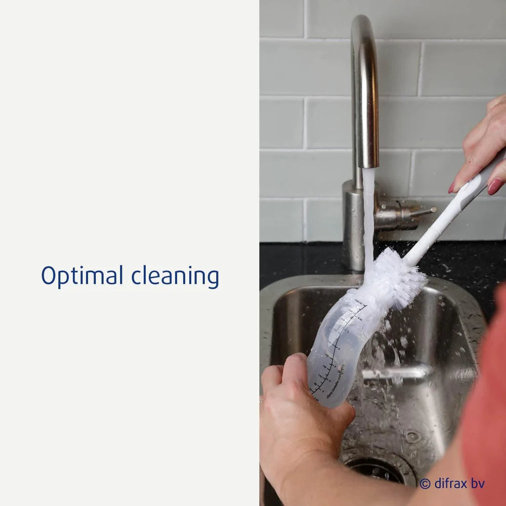 De Difrax Speen en flessenborstel is ideaal voor het reinigen van de babyfles, de speen en de bodem. De geïntegreerde spenen borstel gebruik je voor het reinigen van de flessenspeen en lastige hoekjes. De babyfles is zo volledig vrij van melkvoeding of andere flesvoedingresten.