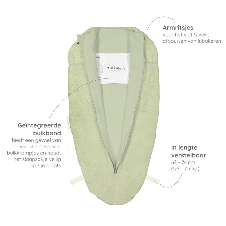 Rond de 5,5 maand breekt er een nieuwe fase aan. Het ukje doet pogingen tot omrollen en de bewegingen worden gerichter. De onrust begint af te nemen en het kindje is weldra toe aan gewoon slapen, met de armen los. De Mini heeft ritsjes ter hoogte van de armpjes, die handig zijn bij het afbouwen. Het kindje kan dan in het vertrouwde slaapzakje blijven, maar nu met de armpjes naar buiten.