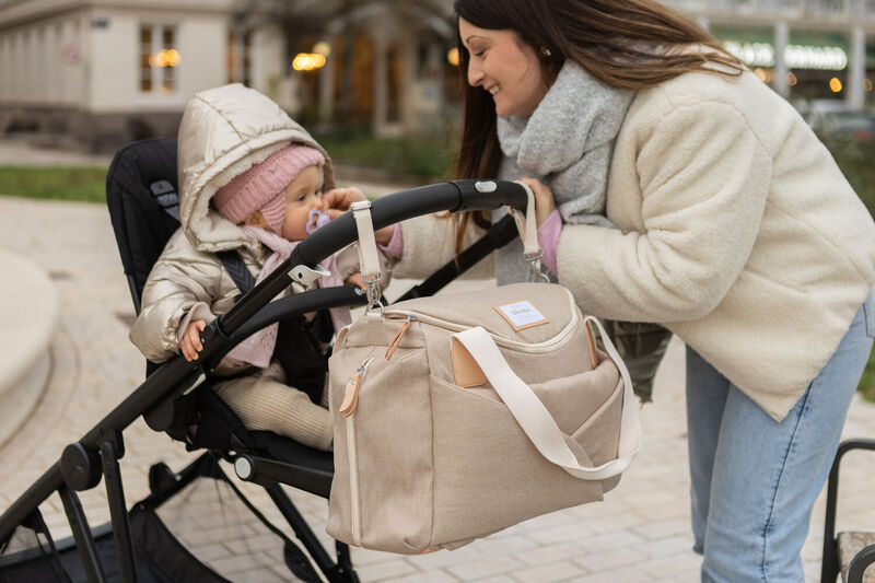 De Sydney luiertas is ontworpen voor optimale opslag en praktische organisatie voor ouders. Met een coconvormige luierruimte aan de voorkant, een ruim verschoningsmatje en een grote opening is het gemakkelijk om luiers te verschonen en bij de benodigdheden te komen. Hij is voorzien van een bevestigingssysteem voor de kinderwagen en meerdere vakken voor baby- en ouderspullen (verzorging, maaltijden, persoonlijke spullen). Een geïsoleerd zijvak houdt de voeding van je baby op de ideale temperatuur. De tas wordt geleverd met een fopspeenkit en een aankleedkussen.